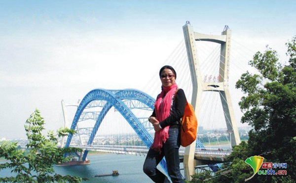 桂婞與湘潭蓮城大橋的合影。本人供圖