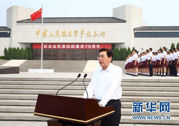 7月7日,紀(jì)念全民族抗戰(zhàn)爆發(fā)79周年儀式在北京中國(guó)人民抗日戰(zhàn)爭(zhēng)紀(jì)念館舉行。中共中央政治局委員、北京市委書(shū)記郭金龍主持紀(jì)念儀式。新華社記者丁海濤攝