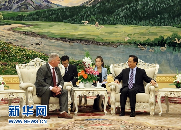 7月15日,中共中央政治局委員、中華全國(guó)總工會(huì)主席李建國(guó)在北京人民大會(huì)堂會(huì)見應(yīng)邀來訪的以主席什馬科夫?yàn)閳F(tuán)長(zhǎng)的俄羅斯獨(dú)立工聯(lián)代表團(tuán)。新華社記者 劉衛(wèi)兵 攝