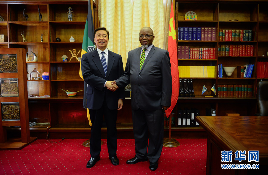 ??? 11月22日,中共中央政治局委員、國家副主席李源潮(左)在南非開普敦會見南非非洲人國民大會(非國大)總書記曼塔謝。 新華社記者翟健嵐攝