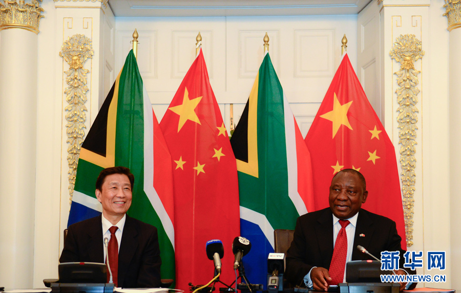 ??? 11月22日,正在南非訪問的中華人民共和國副主席李源潮同南非共和國副總統(tǒng)拉馬福薩在開普敦共同主持召開中國南非國家雙邊委員會(huì)第六次全體會(huì)議并致辭。新華社記者翟健嵐攝