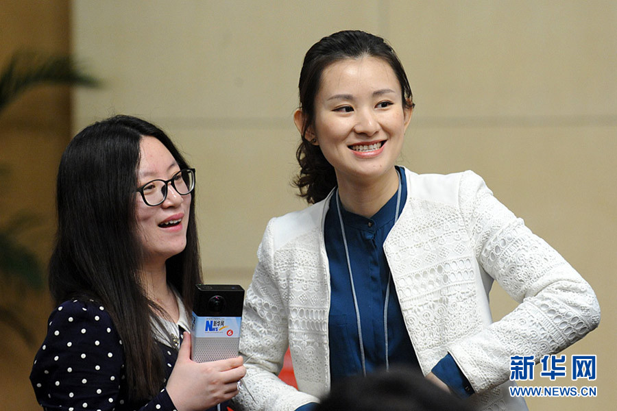 十二屆全國(guó)人大四次會(huì)議新聞中心于3月8日(星期二)10時(shí)在梅地亞中心多功能廳舉行記者會(huì),邀請(qǐng)外交部部長(zhǎng)王毅就“中國(guó)的外交政策和對(duì)外關(guān)系”的相關(guān)問(wèn)題回答中外記者的提問(wèn)。圖為發(fā)布會(huì)現(xiàn)場(chǎng)的美女記者。新華網(wǎng)/中國(guó)政府網(wǎng)記者 陳競(jìng)超攝