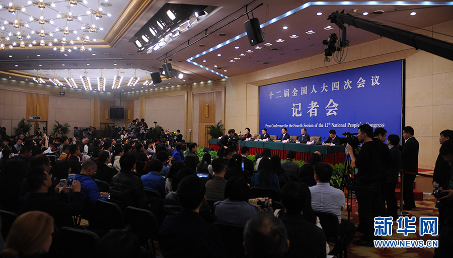 ?????十二屆全國人大四次會議新聞中心于3月12日(星期六)14時30分在梅地亞中心多功能廳舉行記者會,邀請國務院國有資產(chǎn)監(jiān)督管理委員會主任肖亞慶、副主任張喜武、副主任黃丹華和副秘書長、新聞發(fā)言人彭華崗就“國企改革”的相關問題回答中外記者的提問。圖為記者會現(xiàn)場。新華網(wǎng)/中國政府網(wǎng)? 陳杰? 攝