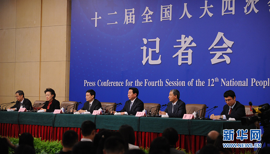?????十二屆全國人大四次會(huì)議新聞中心于3月12日(星期六)14時(shí)30分在梅地亞中心多功能廳舉行記者會(huì),邀請國務(wù)院國有資產(chǎn)監(jiān)督管理委員會(huì)主任肖亞慶、副主任張喜武、副主任黃丹華和副秘書長、新聞發(fā)言人彭華崗就“國企改革”的相關(guān)問題回答中外記者的提問。圖為肖亞慶回答記者提問。新華網(wǎng)/中國政府網(wǎng) 陳杰 攝