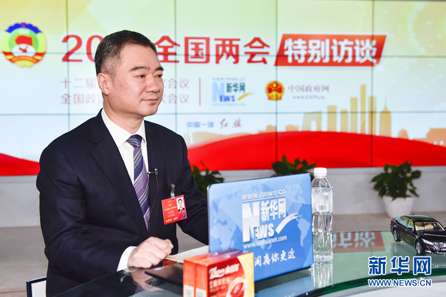 3月12日,全國(guó)人大代表,運(yùn)城市市長(zhǎng)王清憲做客新華網(wǎng)2016全國(guó)兩會(huì)特別訪談,與新華網(wǎng)網(wǎng)友在線交流。圖為王清憲在訪談現(xiàn)場(chǎng)。新華網(wǎng) 付宇鵬 攝