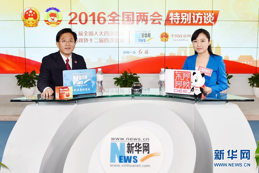 ????2016年3月13日,最高人民檢察院辦公廳主任、新聞辦主任王松苗做客新華網(wǎng)兩會(huì)訪談直播間,與新華網(wǎng)網(wǎng)友在線交流。圖為王松苗。新華網(wǎng) 付宇鵬 攝