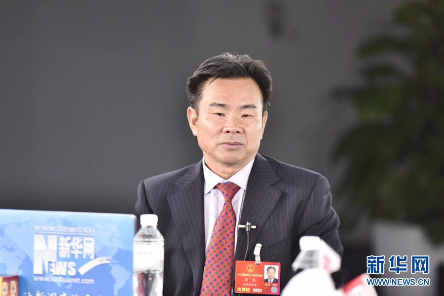 ????2016年3月13日,全國人大代表、海南省三沙市委書記、市政府市長肖杰做客新華網(wǎng)兩會訪談直播間。圖為肖杰在訪談現(xiàn)場。新華網(wǎng) 郭小天 攝