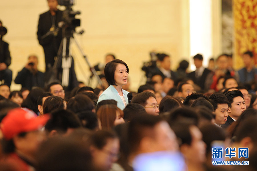 3月16日上午,國務(wù)院總理李克強(qiáng)在人民大會堂三樓金色大廳會見采訪十二屆全國人大四次會議的中外記者并回答記者提出的問題。圖為鳳凰衛(wèi)視記者提問。新華網(wǎng)/中國政府網(wǎng) 陳杰攝