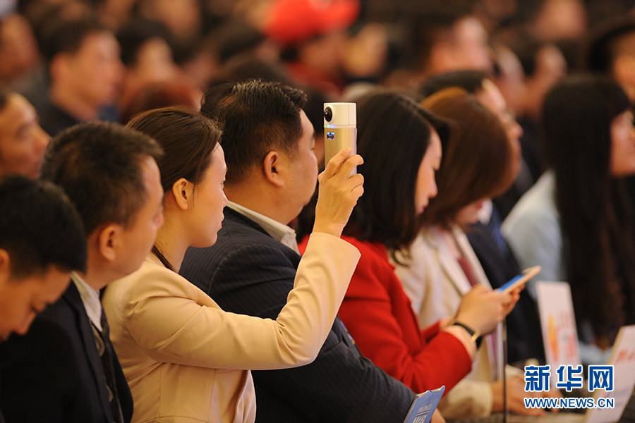 3月16日上午,國務(wù)院總理李克強(qiáng)在人民大會堂三樓金色大廳會見采訪十二屆全國人大四次會議的中外記者并回答記者提出的問題。圖為新華網(wǎng)VR報(bào)道總理記者會。新華網(wǎng)/中國政府網(wǎng) 陳杰攝