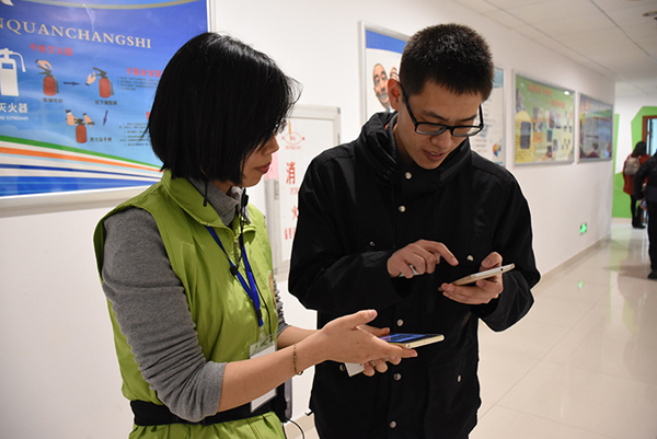 在鯤鵬青少年事務(wù)服務(wù)中心,中國青年網(wǎng)記者曾繁華(左二)與志愿者深度交流。中國網(wǎng)信網(wǎng) 陳舞陽 攝