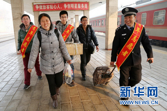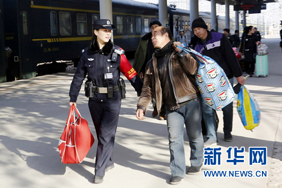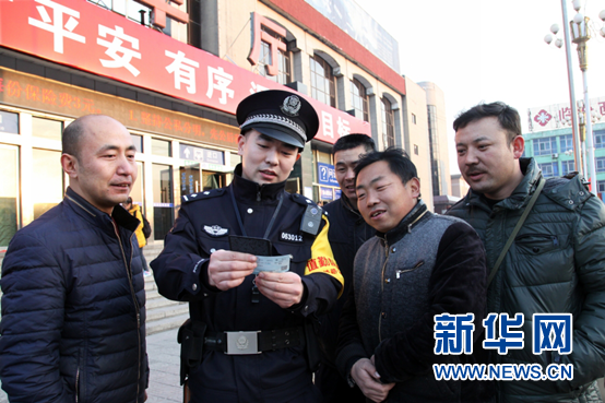 2月12日,侯馬站派出所民警為進(jìn)出站旅客提供幫助。 新華網(wǎng) 田明 攝