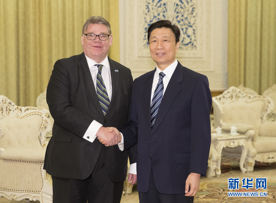 2月28日,中國國家副主席李源潮在北京會(huì)見芬蘭外交部長(zhǎng)索伊尼。新華社記者丁林?jǐn)z