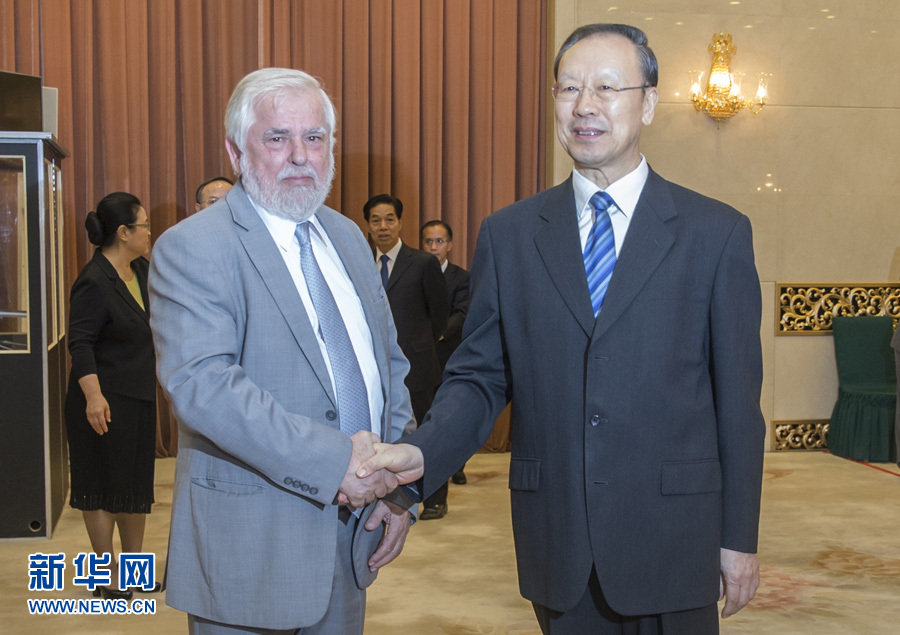 6月28日,中共中央書記處書記、全國政協(xié)副主席、中國經(jīng)濟(jì)社會理事會主席杜青林在北京會見歐盟經(jīng)濟(jì)社會委員會主席達(dá)西斯。 新華社記者崔新鈺 攝