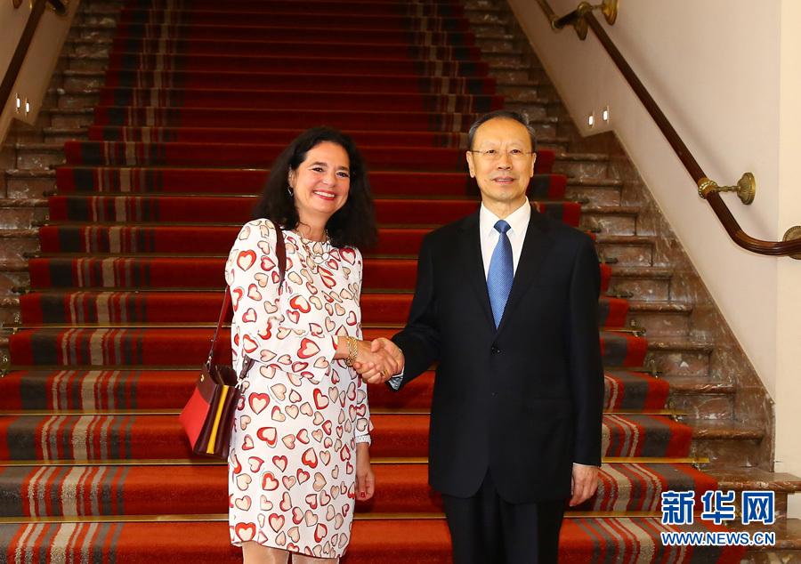 7月4日,在比利時首都布魯塞爾,中共中央書記處書記、全國政協(xié)副主席杜青林(右)會見比利時聯(lián)邦參議長德弗萊涅。應(yīng)德弗萊涅邀請,杜青林率中共代表團(tuán)于7月4日至5日訪問比利時。 新華社記者龔兵攝