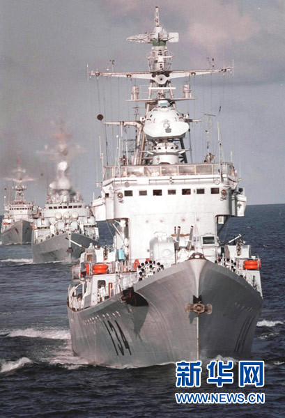 中國海軍導(dǎo)彈驅(qū)逐艦、護(hù)衛(wèi)艦編隊(duì)巡邏在祖國的萬里海疆(資料照片)。新華社發(fā)