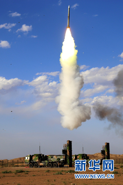 空軍地空導(dǎo)彈兵第二營(yíng)在執(zhí)行“藍(lán)盾”演習(xí)任務(wù)中進(jìn)行實(shí)彈發(fā)射(2016年7月14日攝)。新華社發(fā)