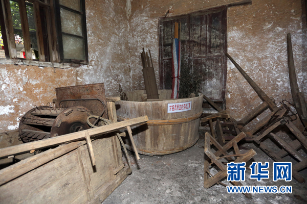 江西蓮花縣沿背村甘祖昌將軍故居中擺放著他曾經使用過的勞動工具(3月29日攝)。新華社發(fā)