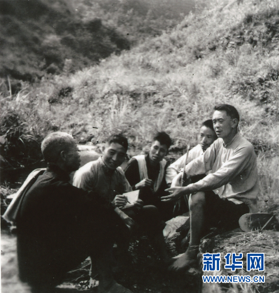甘祖昌將軍(右一)在地頭和農民們聊天(資料圖片)。新華社發(fā)