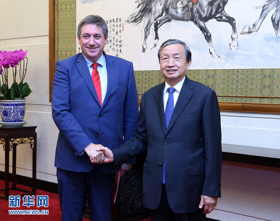 9月26日,國(guó)務(wù)院副總理馬凱在北京釣魚(yú)臺(tái)國(guó)賓館會(huì)見(jiàn)比利時(shí)副首相兼內(nèi)政大臣讓·讓邦一行。 新華社記者 姚大偉 攝