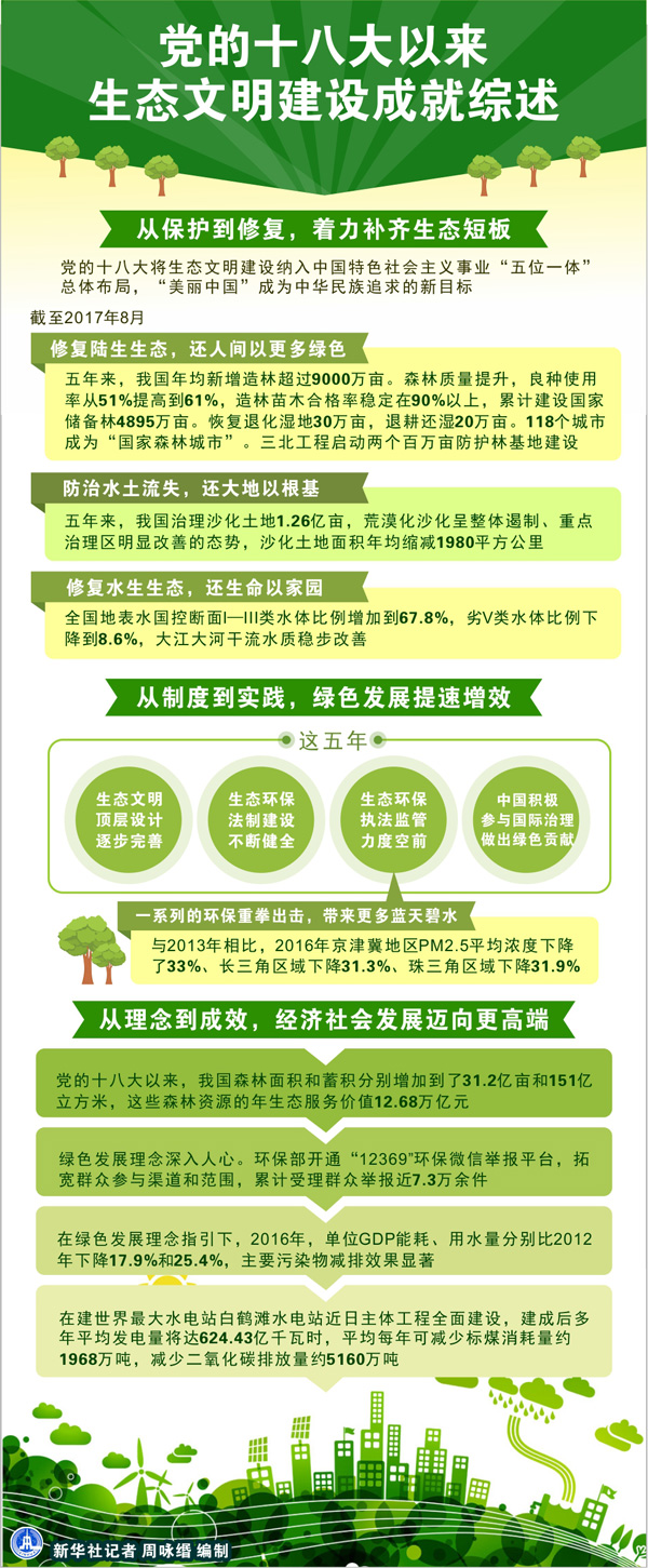 黨的十八大以來,在以習近平同志為核心的黨中央領導下,綠色發(fā)展、綠色生活理念深入人心,中國經(jīng)濟社會發(fā)展更加充滿活力,生態(tài)文明建設推動中華民族在偉大復興征程中闊步前進。