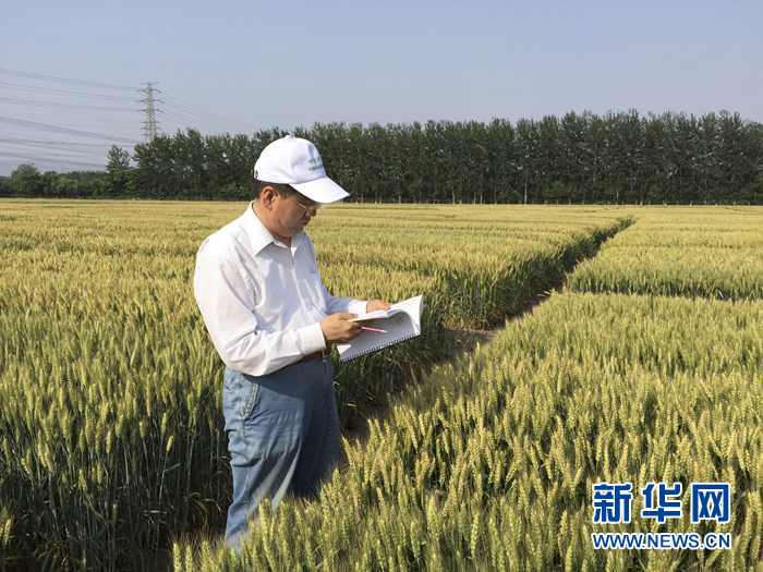 何中虎在中國農(nóng)業(yè)科學院昌平育種實驗站觀察小麥新品種(資料照片)。新華社發(fā)