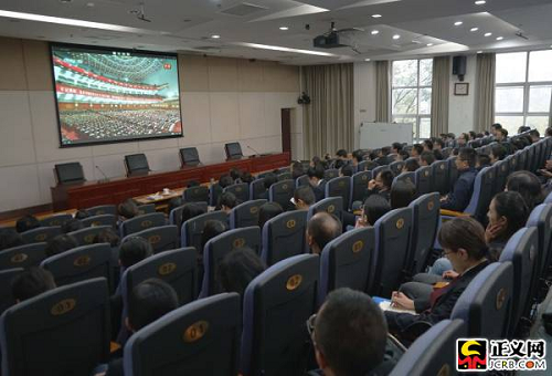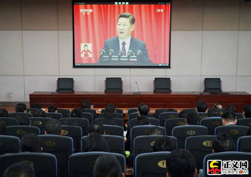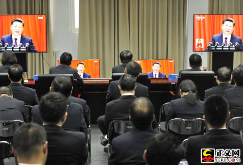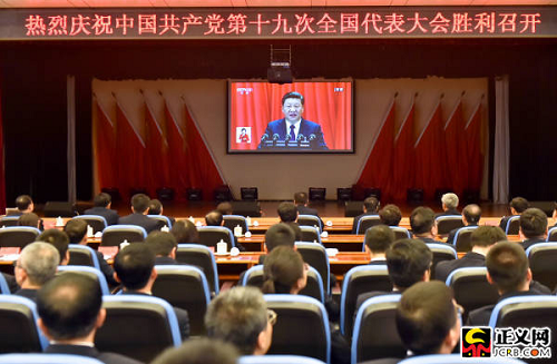 中國共產(chǎn)黨第十九次全國代表大會(huì)18日上午在人民大會(huì)堂開幕。習(xí)近平總書記代表第十八屆中央委員會(huì)向大會(huì)作了題為《決勝全面建成小康社會(huì) 奪取新時(shí)代中國特色社會(huì)主義偉大勝利》的報(bào)告。國家檢察官學(xué)院黨員干部集體收看收聽了開幕式。徐鵬宇攝