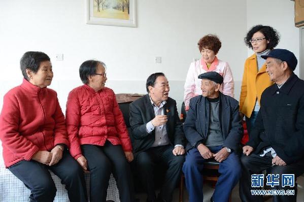 11月2日,十九大代表亓慶良在醫(yī)院養(yǎng)老中心與老人們交流參加十九大的心得體會。新華社發(fā)(陳穎攝)