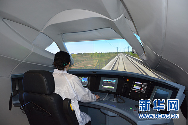 在中國通號(hào)CTCS-3實(shí)驗(yàn)室體驗(yàn)高鐵貼地“飛行”。據(jù)工作人員介紹,該實(shí)驗(yàn)室采用半實(shí)物仿真建模方法,通過上萬公里高鐵工程的現(xiàn)場(chǎng)驗(yàn)證,仿真平臺(tái)的可信度達(dá)到國際一流。新華網(wǎng)陳淑君攝
