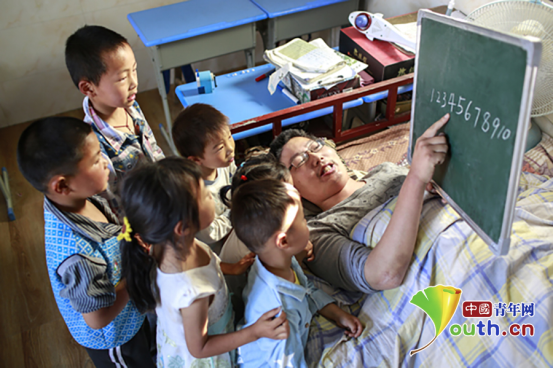 由于葉海濤的雙下肢關(guān)節(jié)僵直,沒有辦法筆直地坐著,他便躺在病床上,側(cè)著身子用小黑板給孩子們講解題目??墒沁@樣一來,躺的時間一旦久了,葉海濤的身體便會全都麻木,疼痛難忍。但他卻始終堅持著……最難熬的是夏季,他睡在板床上長時間保持同一個姿勢,全身都被汗水浸透了,額頭上黃豆般大小的汗珠不斷地冒出,滾落到板床上,床面已經(jīng)被浸濕。常人都難以忍受,更何況是患病在床的葉海濤呢?在這種異常難受的狀態(tài)下,葉海濤憑借自己驚人的毅力,克服困難,十八年如一日,堅持為孩子們輔導(dǎo)功課。這份教學(xué)工作,是繁雜的,須深入學(xué)習(xí)、不斷鉆研,研究教學(xué)思路。為了更好地勝任這份輔導(dǎo)任務(wù),他經(jīng)常在空余時間閱讀有關(guān)教育方面的書籍。