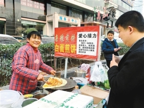 這一免費(fèi),就是9年。有時(shí)候每天要免費(fèi)送出10余個(gè)煎餅果子。每當(dāng)有拾荒者、殘疾人、環(huán)衛(wèi)工路過(guò),趙彥蘋還會(huì)主動(dòng)上前詢問(wèn),一個(gè)不夠,就兩個(gè)、三個(gè),直到對(duì)方吃飽,偶爾她還會(huì)塞給對(duì)方幾十元錢?!澳軒鸵粋€(gè)是一個(gè)!”為了讓更多人吃到免費(fèi)的煎餅果子,夫妻倆還印制了厚厚一沓“愛(ài)心接力”名片。“有些人不知道我這個(gè)小攤,但是通過(guò)名片,他們就可以給我打電話,或者找朋友捎回去?!?/p>