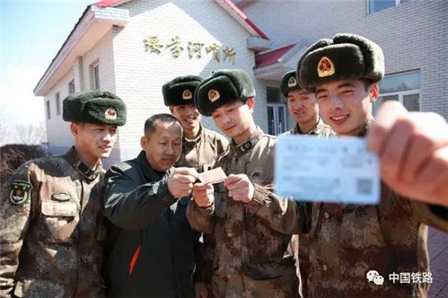 拿到春運(yùn)車票后,老張趕緊把票送到哨所戰(zhàn)士的手中。(圖片來(lái)源:中國(guó)鐵路微信公號(hào))