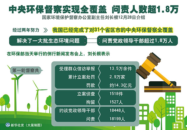 圖表:中央環(huán)保督察實(shí)現(xiàn)全覆蓋 問(wèn)責(zé)人數(shù)超1.8萬(wàn) 新華社發(fā) 大巢制圖