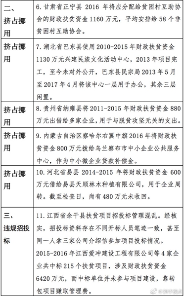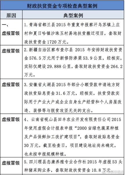 “發(fā)現(xiàn)一起、查處一起、絕不姑息!”財(cái)政部監(jiān)督檢查局有關(guān)負(fù)責(zé)人指出,此次檢查發(fā)現(xiàn)了一批違法違規(guī)問(wèn)題,本著“零容忍”態(tài)度已進(jìn)行了嚴(yán)肅處理。從檢查發(fā)現(xiàn)問(wèn)題中的一些典型案例看,虛報(bào)冒領(lǐng)、擠占挪用、違規(guī)招投標(biāo)、盲目決策導(dǎo)致資金大量浪費(fèi)、精準(zhǔn)扶貧貫徹落實(shí)不到位是當(dāng)前濫用扶貧資金的主要問(wèn)題所在。