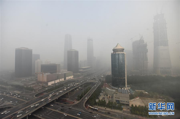 ??? 2016年10月14日,北京市區(qū)被霧霾籠罩。當(dāng)日早晨,北京市能見(jiàn)度在1公里左右,局部地區(qū)能見(jiàn)度不足500米。新華社記者 羅曉光 攝