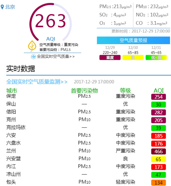 ??? 12月28日,華北黃淮等地迎來(lái)霾天氣過(guò)程。晚18時(shí),北京市發(fā)布空氣重污染藍(lán)色預(yù)警,污染范圍為2017年冬季之最。