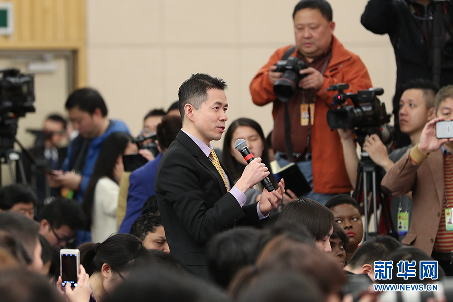 十二屆全國(guó)人大五次會(huì)議新聞中心于3月8日(星期三)10時(shí)在梅地亞中心多功能廳舉行記者會(huì),邀請(qǐng)外交部部長(zhǎng)王毅就“中國(guó)的外交政策和對(duì)外關(guān)系”的相關(guān)問(wèn)題回答中外記者的提問(wèn)。圖為美國(guó)有線電視新聞網(wǎng)記者提問(wèn)。新華網(wǎng)/中國(guó)政府網(wǎng)?翟子赫 攝