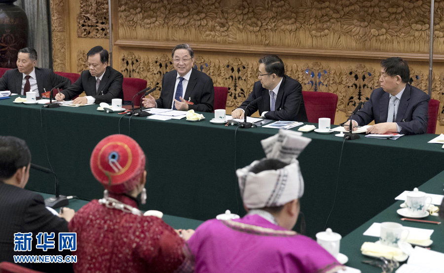 3月9日,中共中央政治局常委、全國政協(xié)主席俞正聲參加十二屆全國人大五次會議貴州代表團(tuán)的審議。 新華社記者 丁海濤 攝