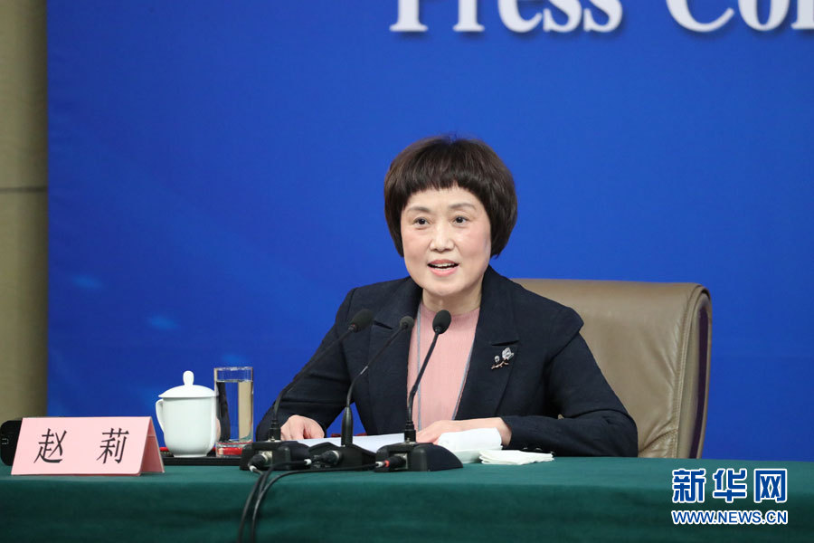 3月10日,十二屆全國人大五次會議新聞中心舉行記者會,邀請國家工商行政管理總局局長張茅就“深化商事制度改革”的相關(guān)問題回答中外記者的提問。圖為記者會主持人趙莉。新華網(wǎng)/中國政府網(wǎng)?孫韜 攝