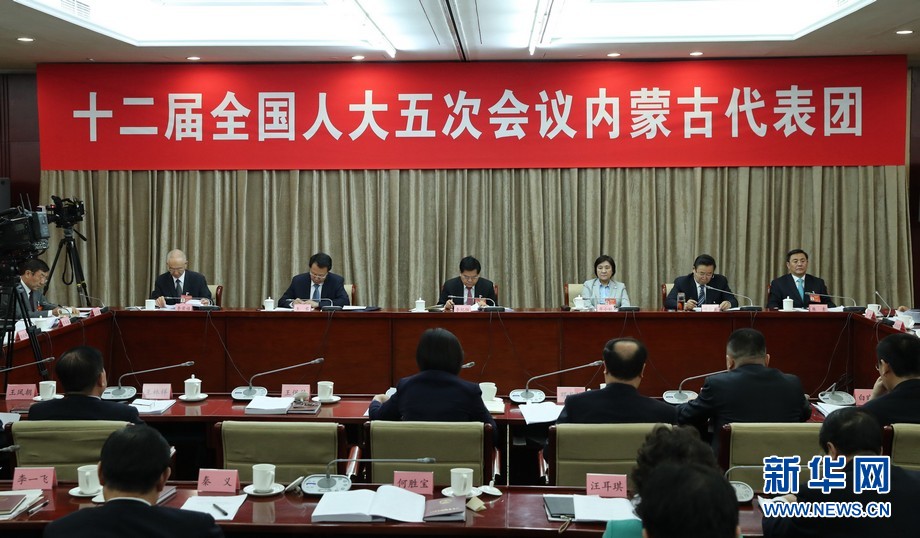 3月10日,十二屆全國人大五次會議內蒙古代表團全體會議向媒體開放。新華網(wǎng)發(fā)(王超 攝)