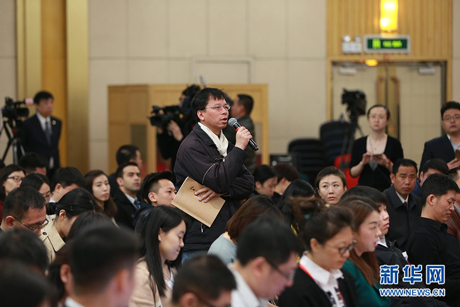 3月11日,十二屆全國人大五次會議新聞中心舉行記者會,邀請工業(yè)和信息化部部長苗圩、副部長辛國斌和總工程師、新聞發(fā)言人張峰就“推進實施‘中國制造2025’”的相關問題回答中外記者的提問。圖為臺灣旺旺中時媒體集團工商時報記者提問。新華網/中國政府網 傅義洲 攝