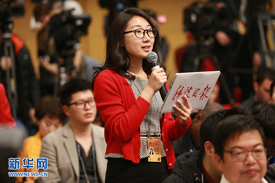 3月11日,十二屆全國(guó)人大五次會(huì)議新聞中心舉行記者會(huì),邀請(qǐng)科技部部長(zhǎng)萬(wàn)鋼、秘書(shū)長(zhǎng)徐建培就“2016年創(chuàng)新驅(qū)動(dòng)發(fā)展戰(zhàn)略實(shí)施進(jìn)展成效和2017年重點(diǎn)工作”的相關(guān)問(wèn)題回答中外記者的提問(wèn)。圖為科技日?qǐng)?bào)記者提問(wèn)。新華網(wǎng)/中國(guó)政府網(wǎng) 王健 攝