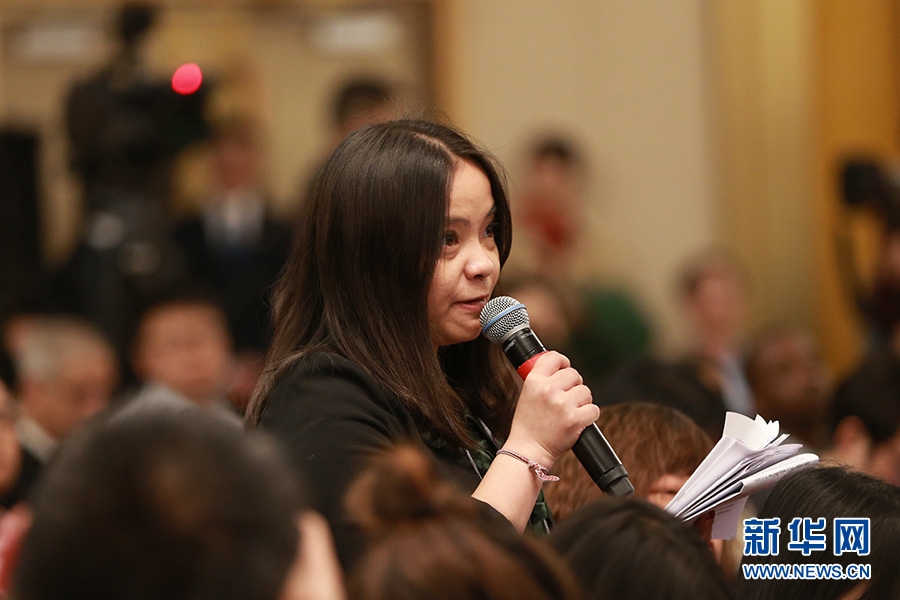 3月11日,十二屆全國人大五次會議新聞中心舉行記者會,邀請科技部部長萬鋼、秘書長徐建培就“2016年創(chuàng)新驅(qū)動發(fā)展戰(zhàn)略實(shí)施進(jìn)展成效和2017年重點(diǎn)工作”的相關(guān)問題回答中外記者的提問。圖為成都商報(bào)記者提問。新華網(wǎng)/中國政府網(wǎng) 王健 攝