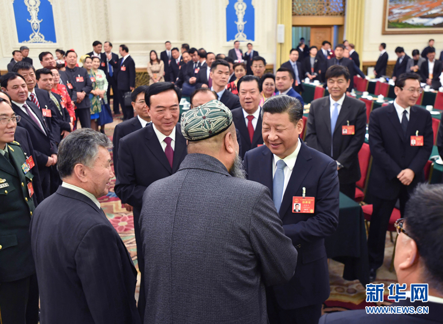 2017年3月10日,習(xí)近平在新疆代表團(tuán)參加審議時說,要全面貫徹黨的民族政策,高舉各民族大團(tuán)結(jié)旗幟,引導(dǎo)各族群眾增強對偉大祖國、中華民族、中華文化、中國共產(chǎn)黨、中國特色社會主義的認(rèn)同,像愛護(hù)自己的眼睛一樣愛護(hù)民族團(tuán)結(jié),像珍視自己的生命一樣珍視民族團(tuán)結(jié),像石榴籽那樣緊緊抱在一起。