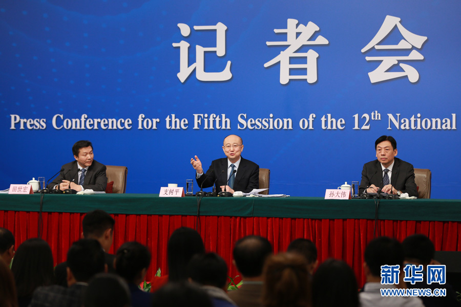 3月14日,十二屆全國人大五次會議新聞中心舉行記者會,邀請國家質(zhì)檢總局局長支樹平、副局長兼國家認證認可監(jiān)督管理委員會主任孫大偉、國家標準化管理委員會主任田世宏就“質(zhì)量提升”的相關問題回答中外記者的提問。圖為記者會現(xiàn)場。新華網(wǎng)/中國政府網(wǎng) 傅義洲 攝?