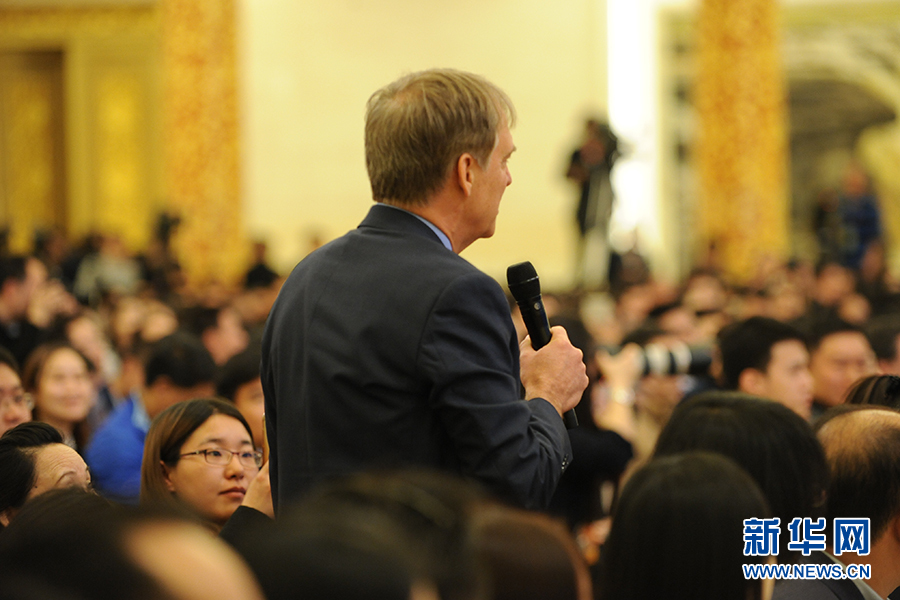 3月15日上午,國(guó)務(wù)院總理李克強(qiáng)在人民大會(huì)堂三樓金色大廳會(huì)見(jiàn)采訪十二屆全國(guó)人大五次會(huì)議的中外記者并回答記者提出的問(wèn)題。圖為彭博社記者提問(wèn)。新華網(wǎng)/中國(guó)政府網(wǎng) 翟子赫 攝?