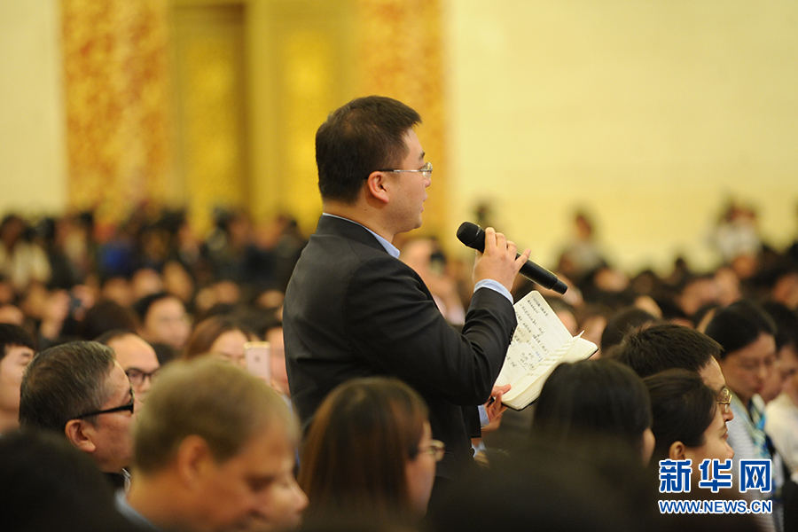 3月15日上午,國(guó)務(wù)院總理李克強(qiáng)在人民大會(huì)堂三樓金色大廳會(huì)見采訪十二屆全國(guó)人大五次會(huì)議的中外記者并回答記者提出的問(wèn)題。圖為中央人民廣播電臺(tái)記者提問(wèn)。新華網(wǎng)/中國(guó)政府網(wǎng) 翟子赫 攝?