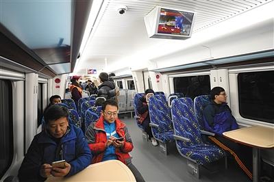 5分鐘后列車(chē)發(fā)車(chē),有不少人開(kāi)始拿出手機(jī)上網(wǎng),“京通號(hào)”動(dòng)車(chē)組內(nèi)也有供乘客免費(fèi)連接的WiFi,只需加入名為BJSJTL-WiFi的網(wǎng)絡(luò),注冊(cè)過(guò)程不超1分鐘。