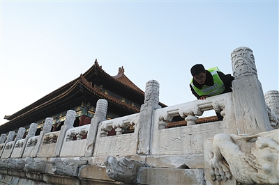 此外,單霽翔透露,故宮西城墻的一段已基本完成修繕,預(yù)計(jì)春節(jié)期間開放,站在城墻上可以看到中山公園景致。今后,故宮西南部的武英殿、寶蘊(yùn)樓、南大庫、南薰殿及城墻等,將組成一片新的游覽區(qū)域。