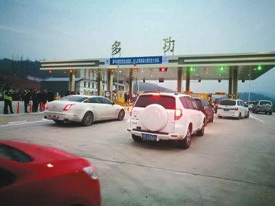2017年12月31日下午5時(shí)許,在雅康高速多功收費(fèi)站外,雖然高速尚未開(kāi)通,二十余輛小轎車已排起了隊(duì),等待駛?cè)胙趴蹈咚?。多功收費(fèi)站位于雅安市天全縣和二郎山之間,主要是為蘆山、寶興方向的車輛設(shè)站,在雅康高速開(kāi)通前,去瀘定必須翻越二郎山,如今高速開(kāi)通,15分鐘便可穿越巍巍二郎山。下午6點(diǎn),雅康高速雅安至瀘定段各收費(fèi)站準(zhǔn)時(shí)向社會(huì)車輛開(kāi)放,標(biāo)志著雅康高速雅安至瀘定段正式試通車。本次試通車的雅瀘段全長(zhǎng)95公里,開(kāi)通4個(gè)收費(fèi)站:多功、天全、新溝、瀘定,ETC同步投入使用;開(kāi)通天全服務(wù)區(qū),可滿足如廁、臨時(shí)加油、停車等基本需求。