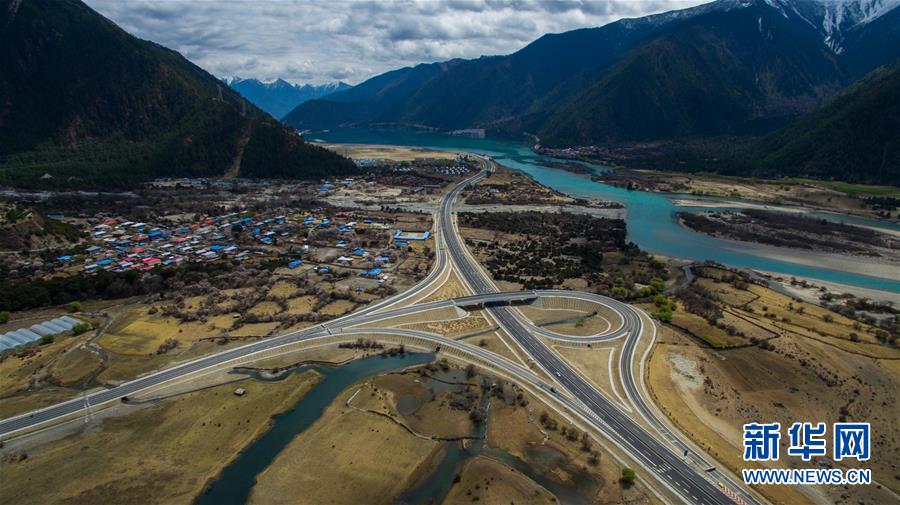 俯瞰西藏林芝境內(nèi)的拉林高等級公路(2016年4月4日攝)。拉林高等級公路起于拉薩市,止于林芝巴宜區(qū)八一鎮(zhèn)。為把拉林高等級公路建設(shè)成為生態(tài)通道、綠色長廊、景觀大道,西藏自治區(qū)林業(yè)廳在科學(xué)指導(dǎo)和嚴(yán)格監(jiān)管下,堅持不破壞、少擾動、多恢復(fù)原則,對拉林高等級公路邊坡進行綠化,種植草坪。新華社記者 普布扎西 攝